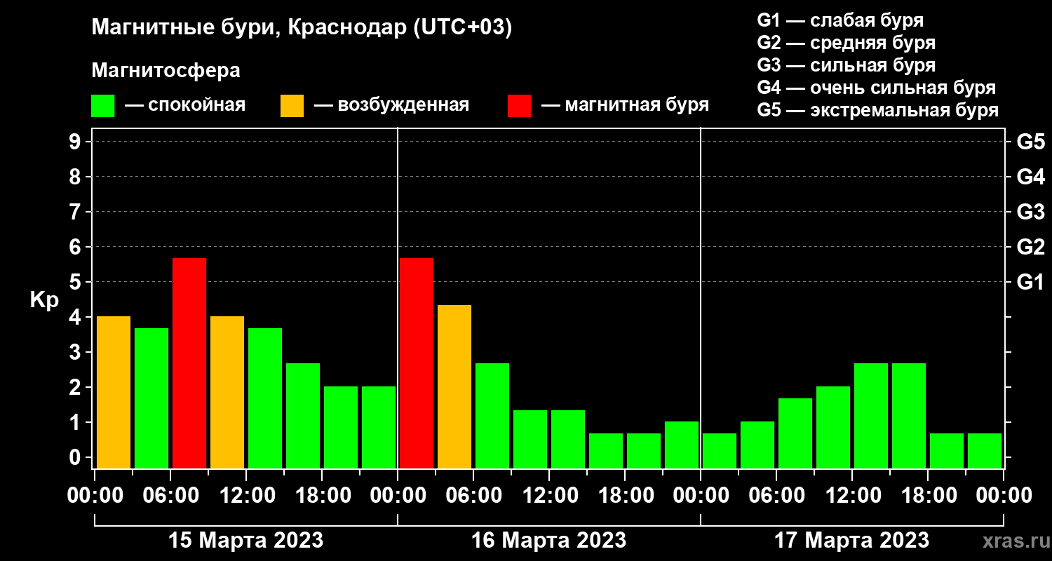 Магнитные бури в Краснодаре 17 марта 2023 года