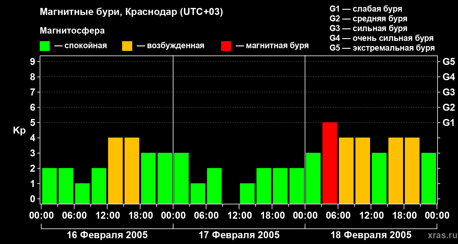 Магнитные бури в Краснодаре в феврале 2005 года