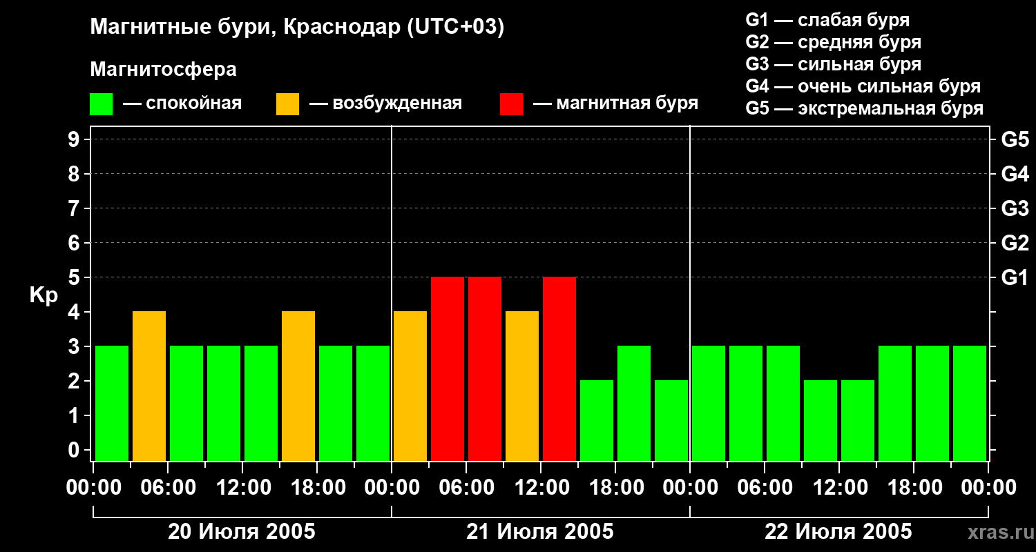 Магнитные бури в Краснодаре — 22 июля 2005 года