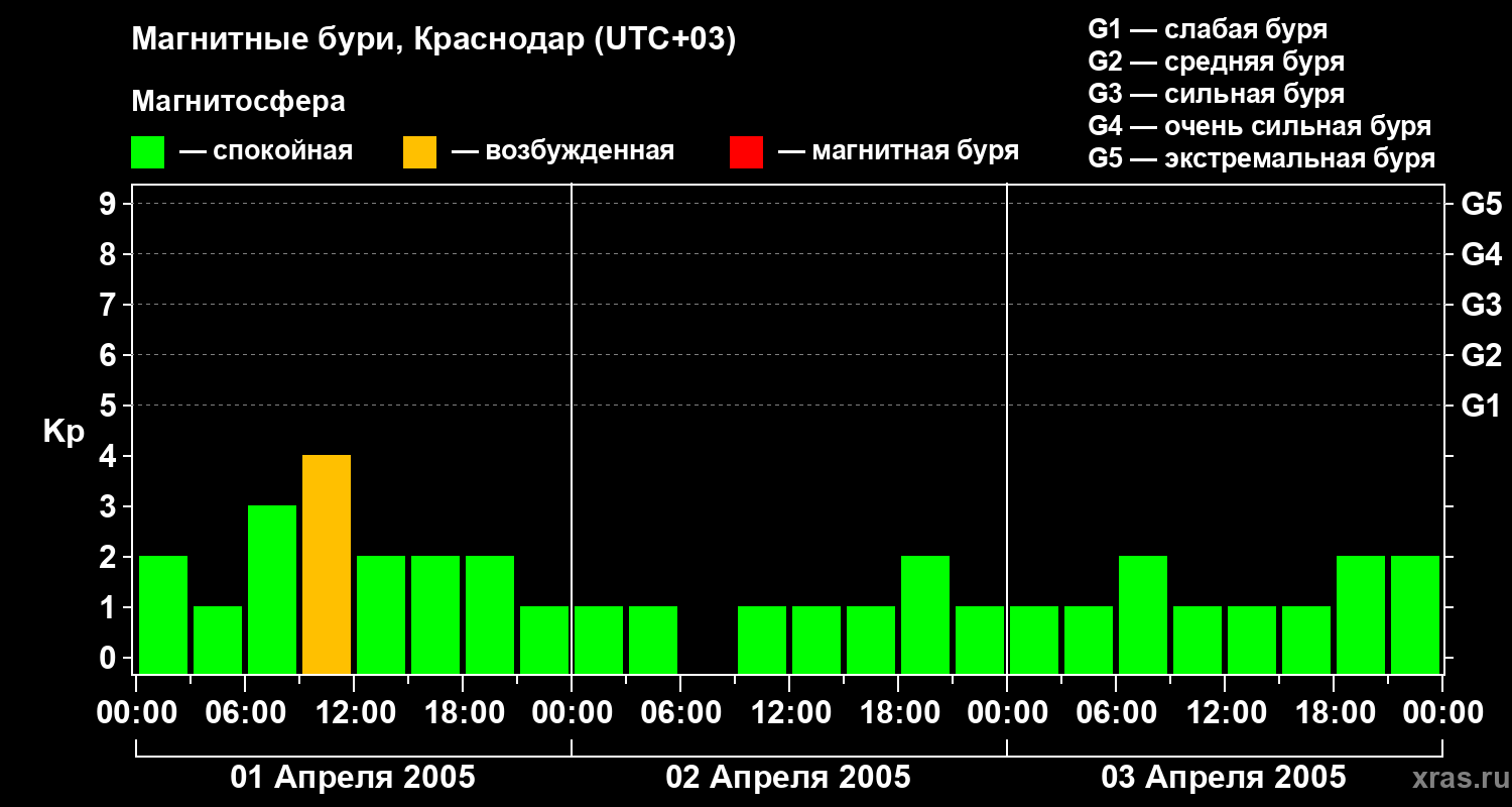Магнитные бури в Краснодаре — 3 апреля 2005 года