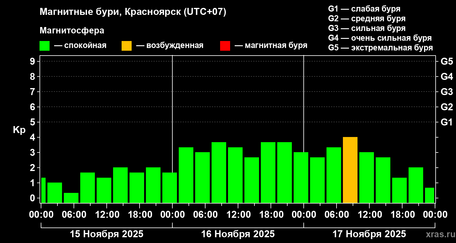 Магнитные бури в Красноярске — 17 ноября 2025 года