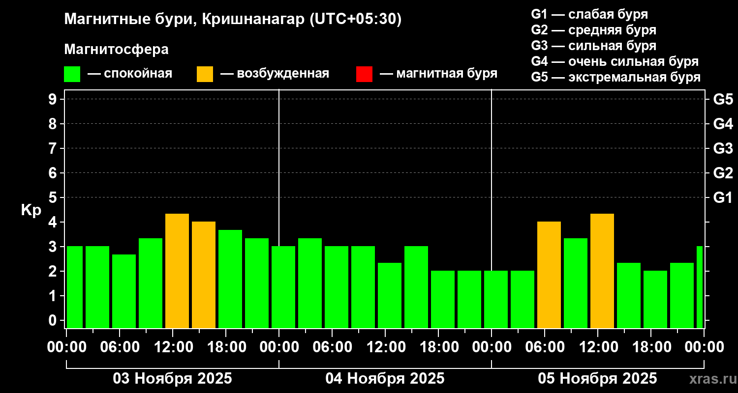 Магнитные бури в Кришнанагаре 5 ноября 2025 года