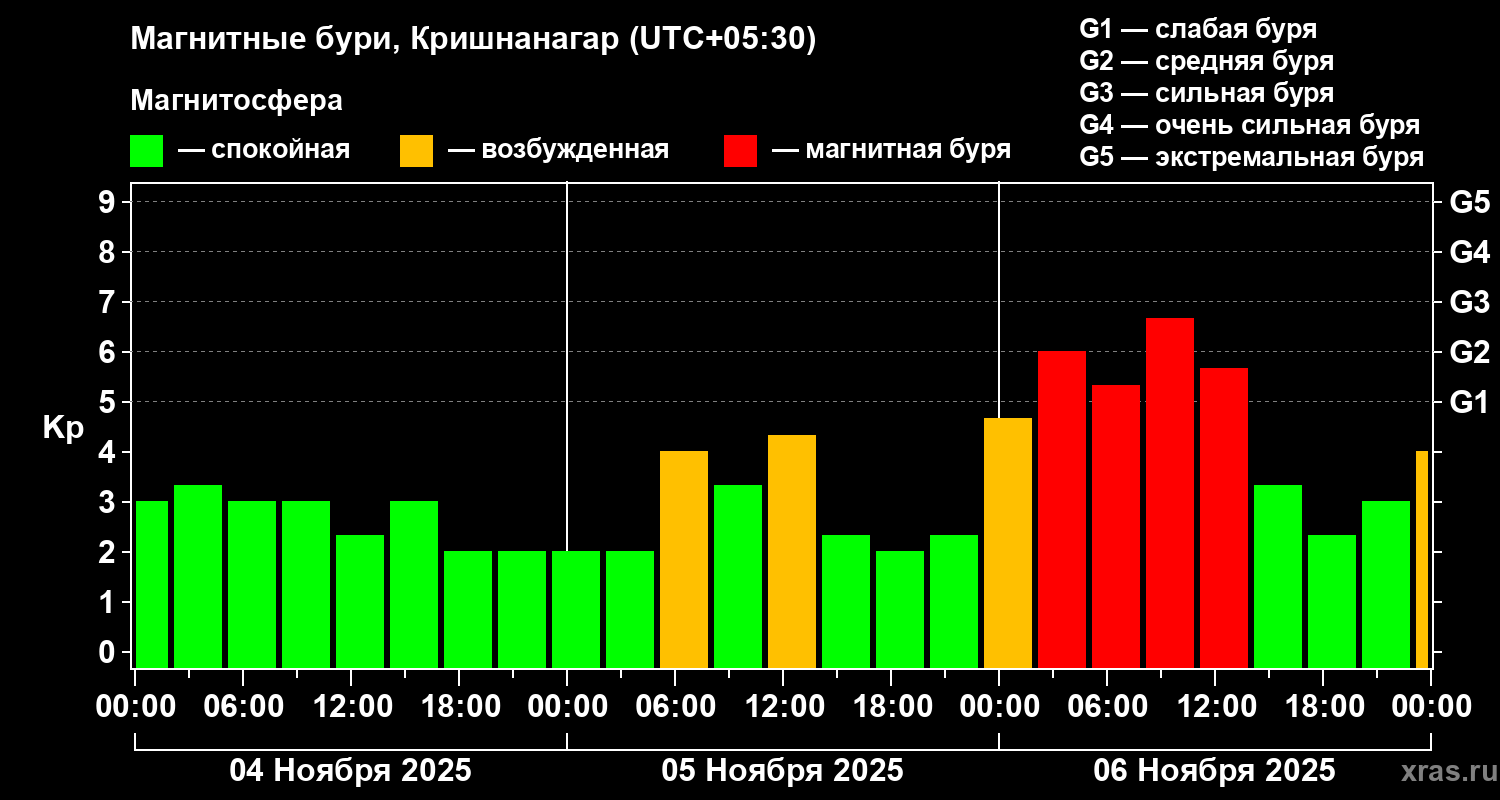 Магнитные бури в Кришнанагаре 6 ноября 2025 года