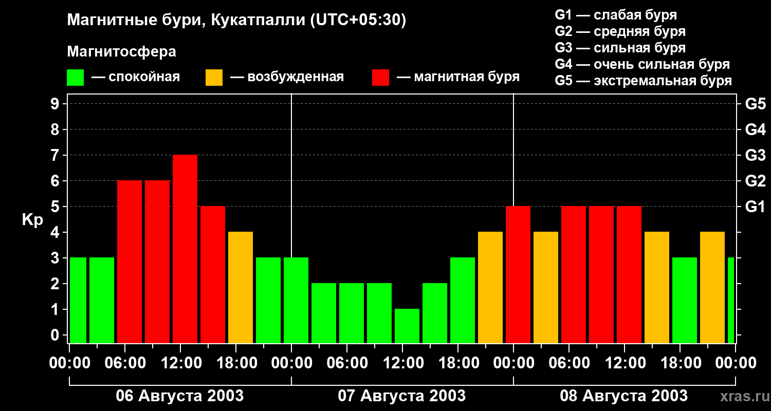 Магнитные бури Кукатпалли 8 августа 2003 года