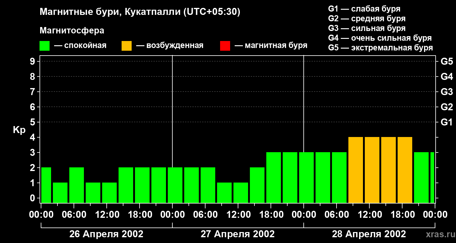 Магнитные бури Кукатпалли 28 апреля 2002 года