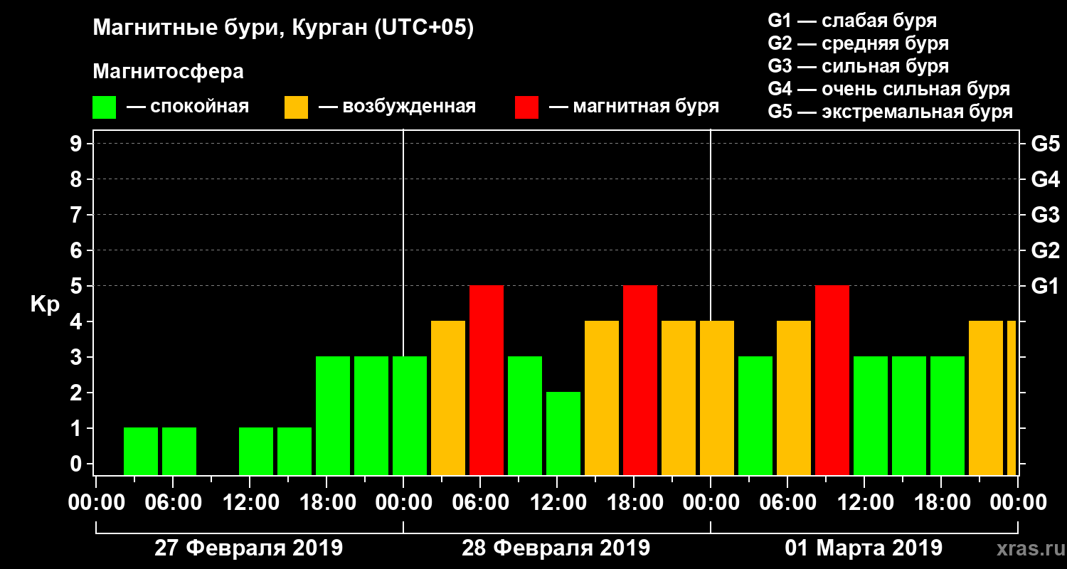 Магнитные бури в Кургане 1 марта 2019 года