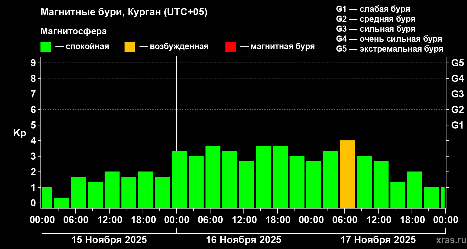 Магнитные бури в Кургане — 17 ноября 2025 года