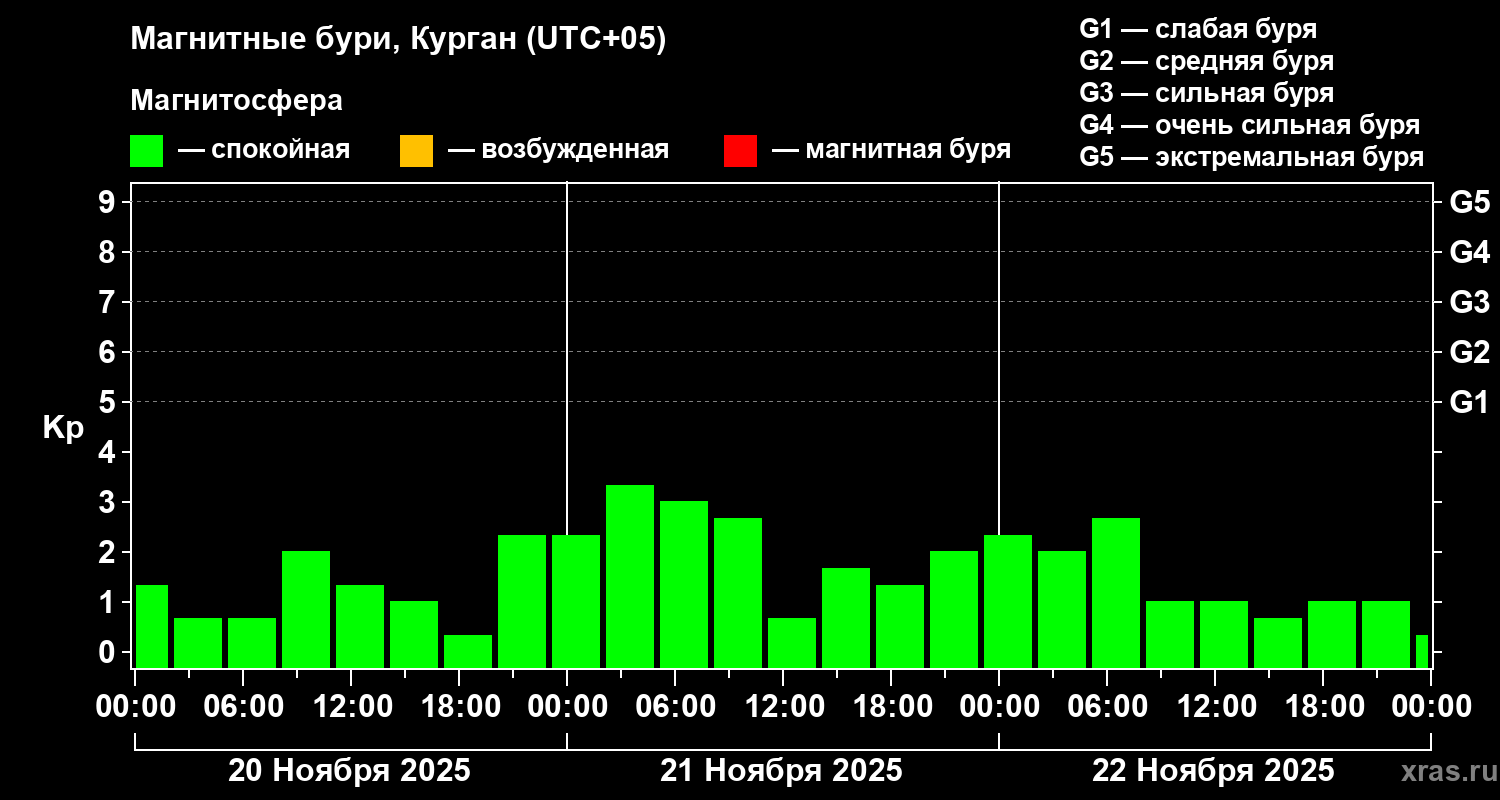 Магнитные бури в Кургане — 22 ноября 2025 года
