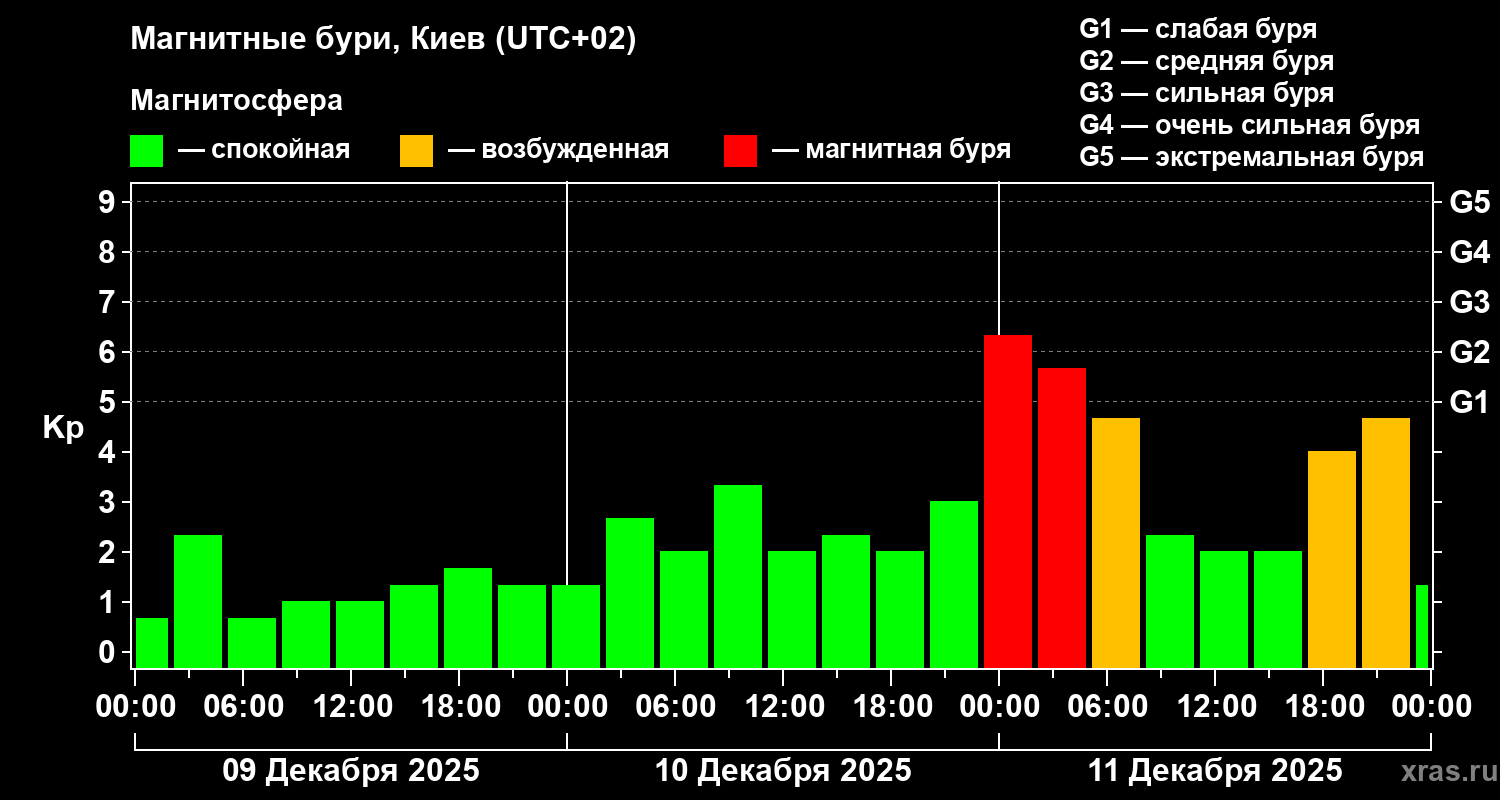Магнитные бури в Киеве — 11 декабря 2025 года