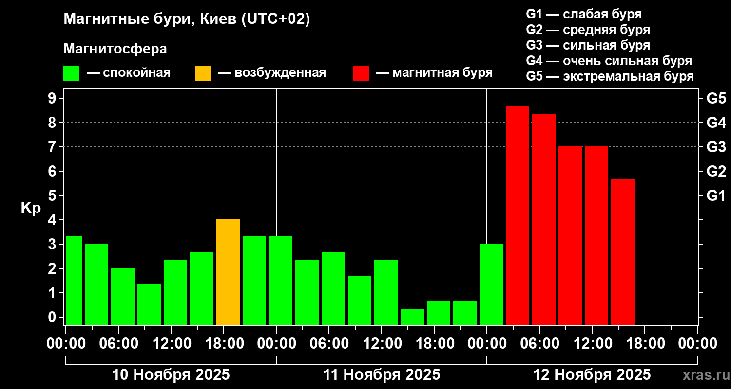 Магнитные бури в Киеве — 12 ноября 2025 года