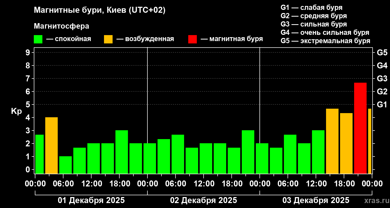 Магнитные бури в Киеве — 3 декабря 2025 года