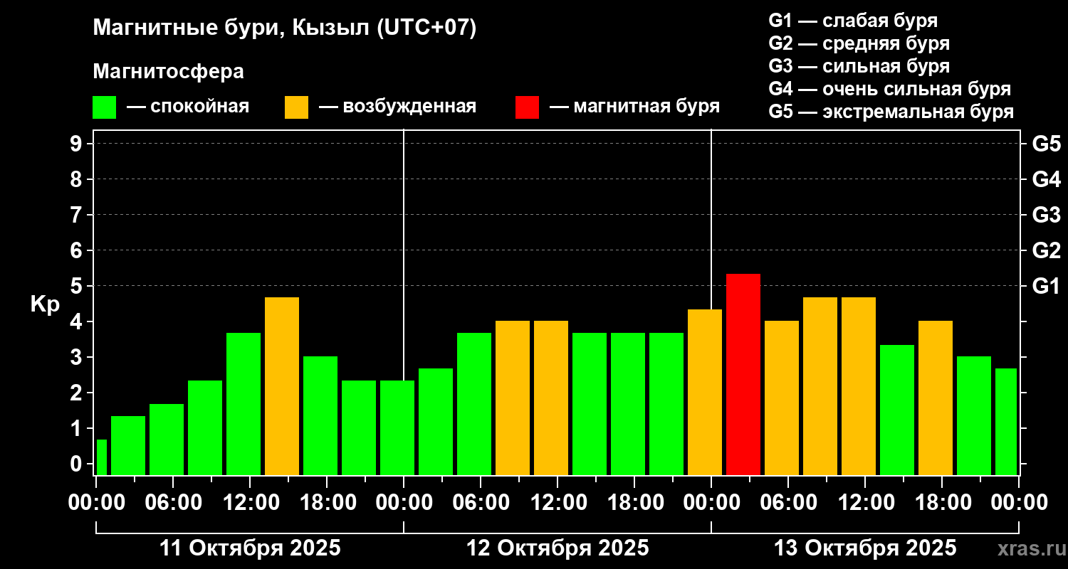 Магнитные бури в Кызыле — 13 октября 2025 года