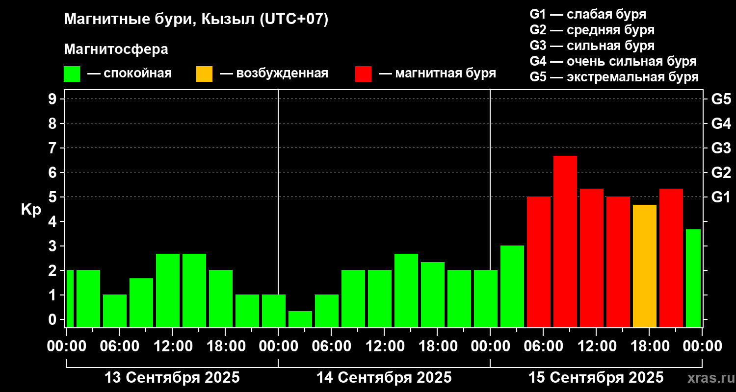 Магнитные бури в Кызыле — 15 сентября 2025 года