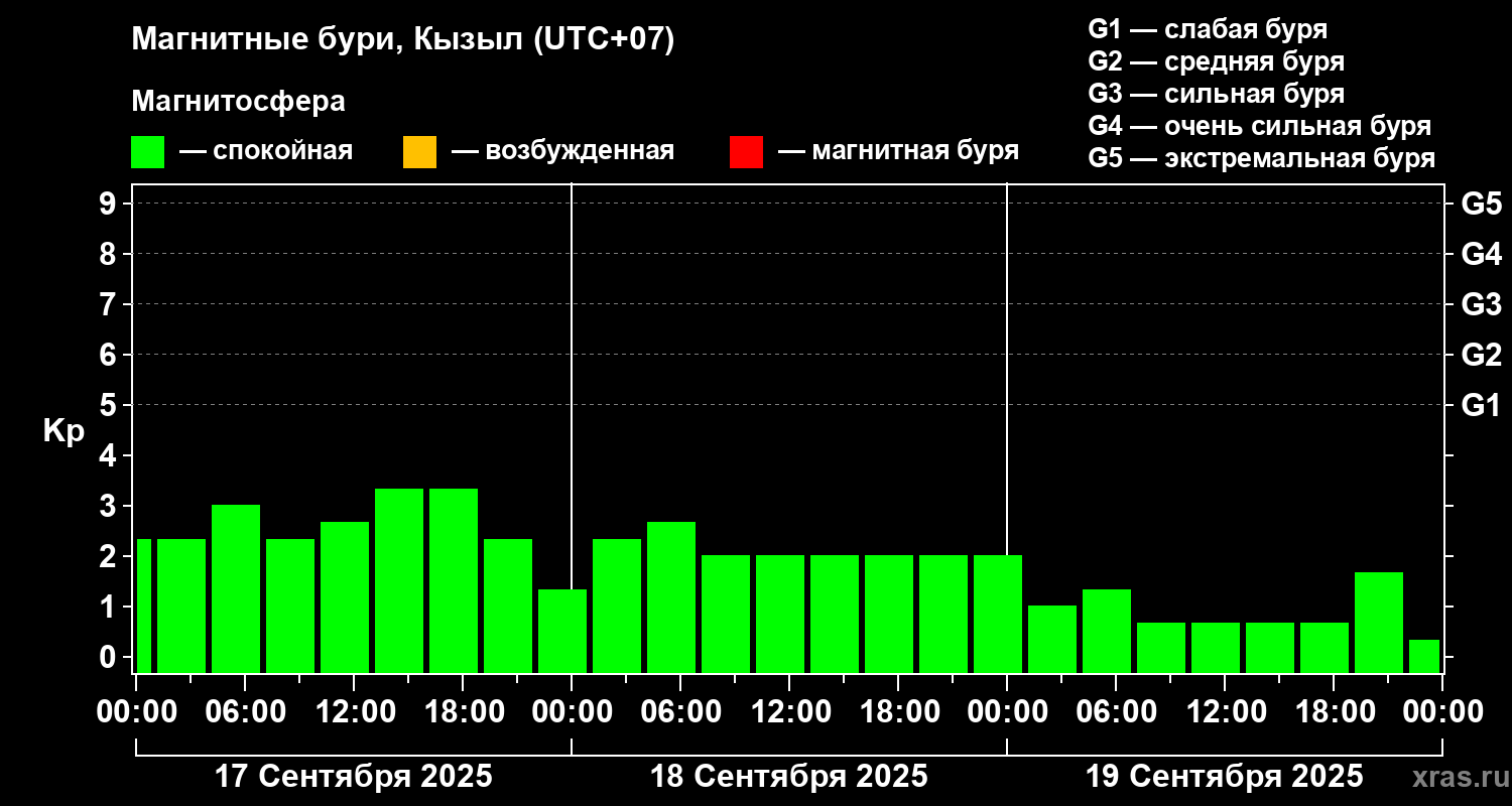Магнитные бури в Кызыле — 19 сентября 2025 года