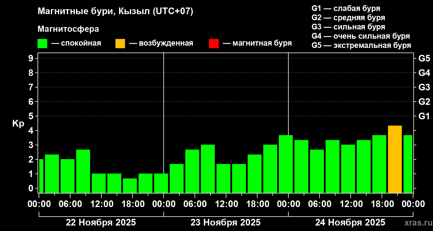 Магнитные бури в Кызыле — 24 ноября 2025 года