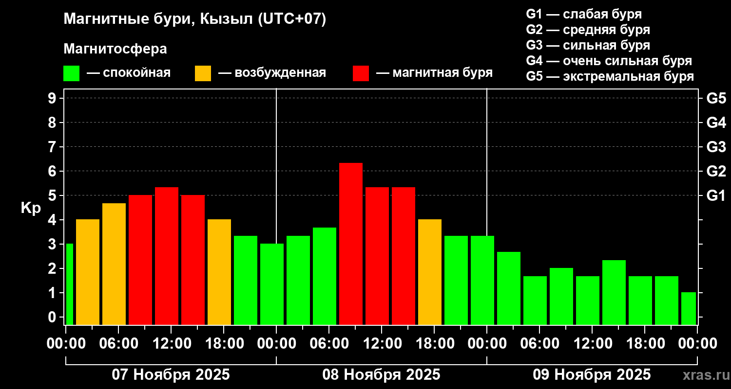 Магнитные бури в Кызыле — 9 ноября 2025 года