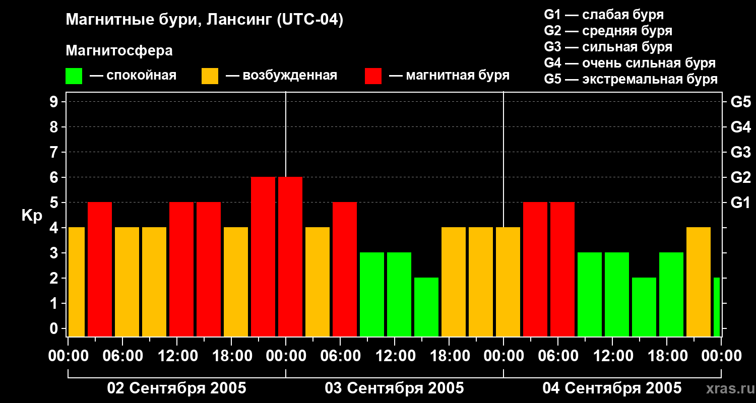Магнитные бури в Лансинге 4 сентября 2005 года