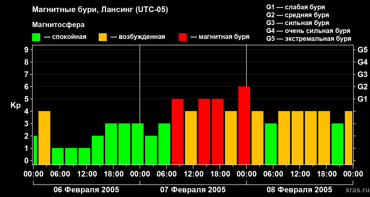 Магнитные бури в Лансинге 8 февраля 2005 года
