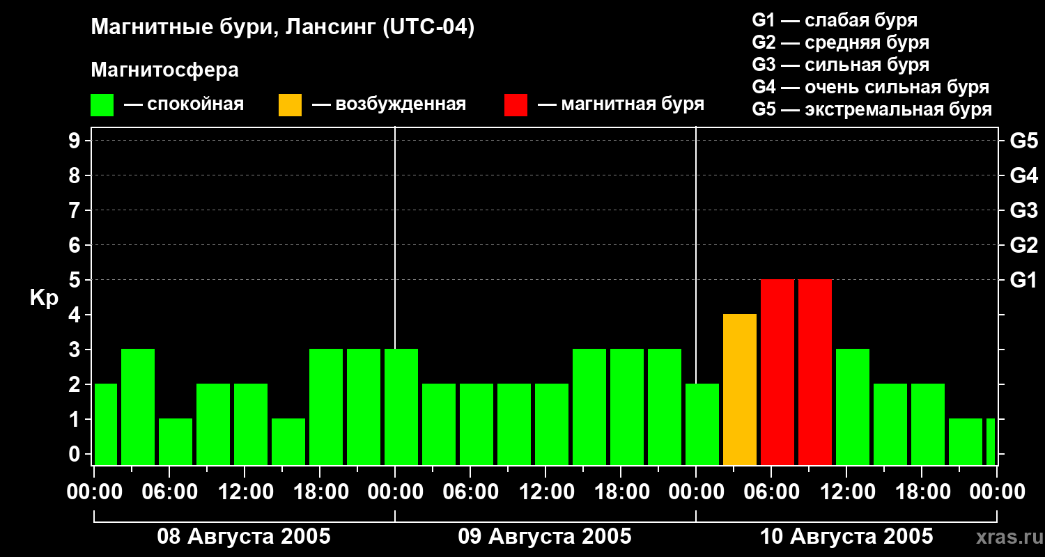 Магнитные бури в Лансинге — 10 августа 2005 года