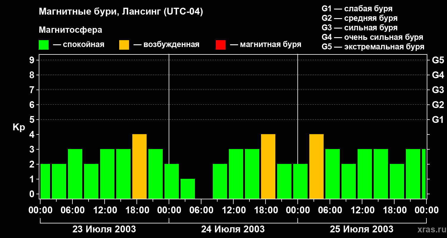Магнитные бури в Лансинге 25 июля 2003 года