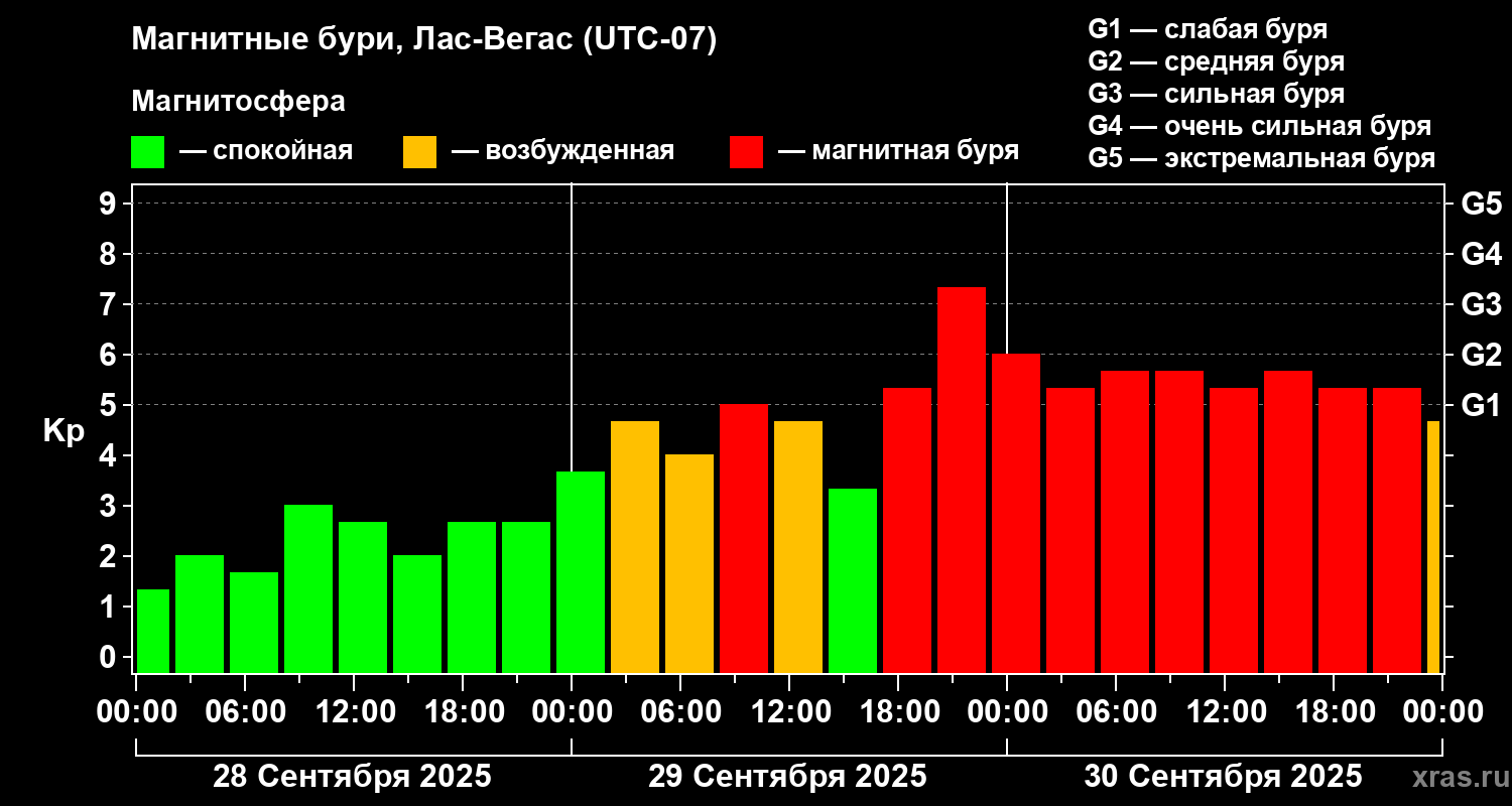 Магнитные бури в Лас-Вегасе — 30 сентября 2025 года
