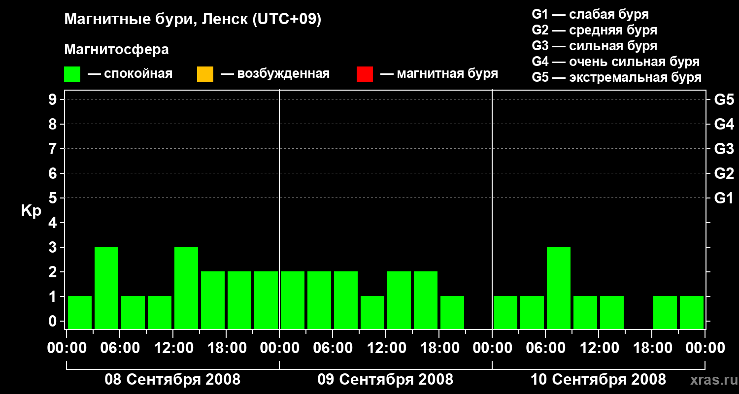 Магнитные бури в Ленске в сентябре 2008 года
