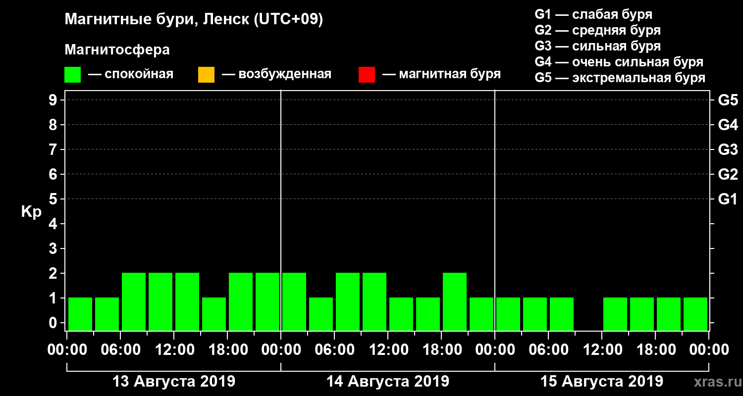 Магнитные бури в Ленске 15 августа 2019 года