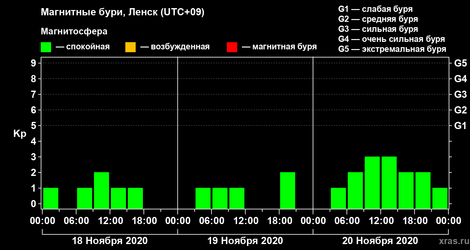 Магнитные бури в Ленске 20 ноября 2020 года