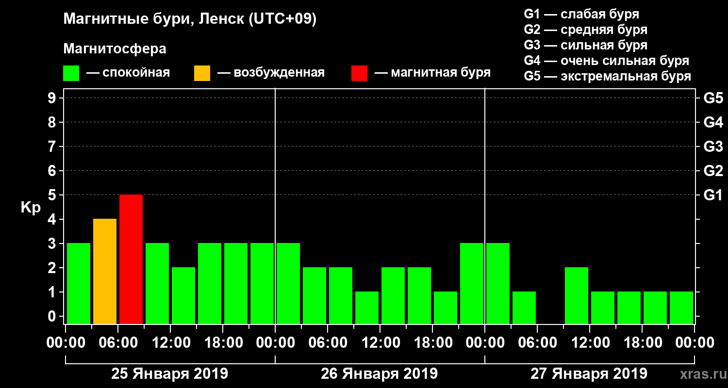 Изменения геомагнитного индекса Kp с 25 по 27 января 2019 года для средних широт