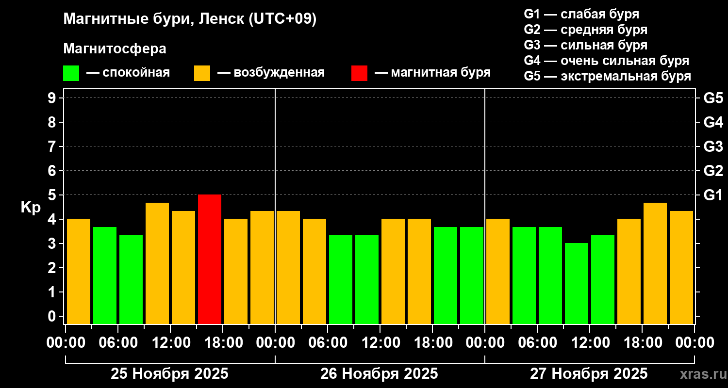 Магнитные бури в Ленске — 27 ноября 2025 года