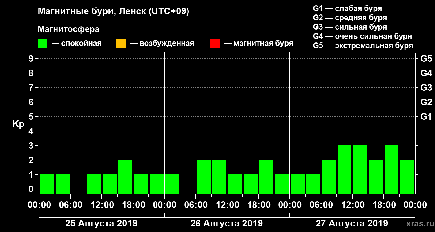 Магнитные бури в Ленске 27 августа 2019 года