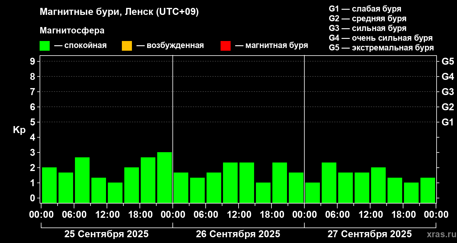 Магнитные бури в Ленске — 27 сентября 2025 года