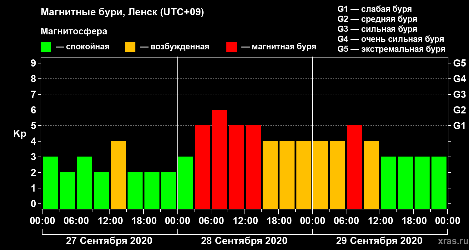 Магнитные бури в Ленске 29 сентября 2020 года