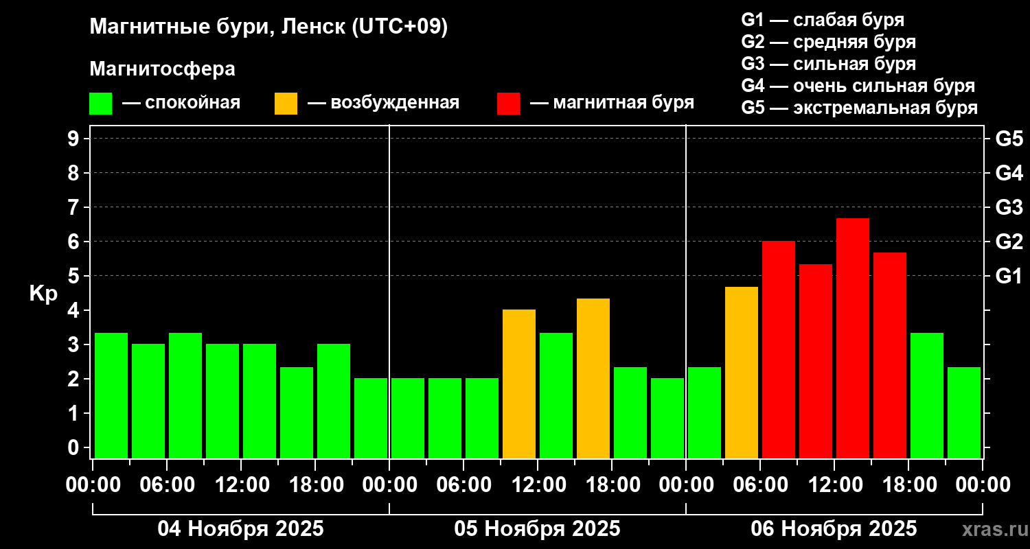 Магнитные бури в Ленске — 6 ноября 2025 года