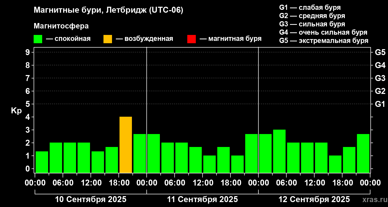Магнитные бури в Летбридже 12 сентября 2025 года