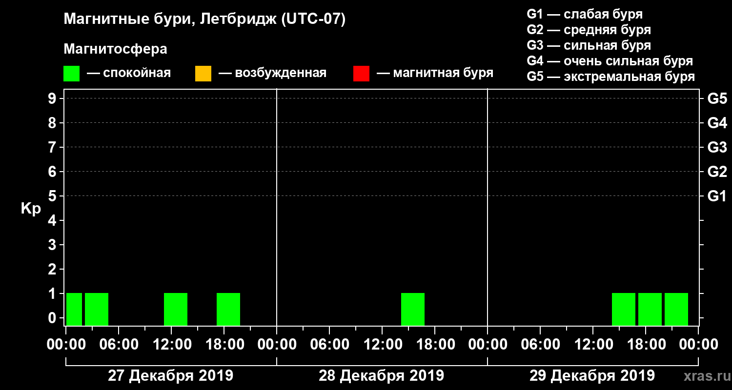 Магнитные бури в Летбридже 29 декабря 2019 года