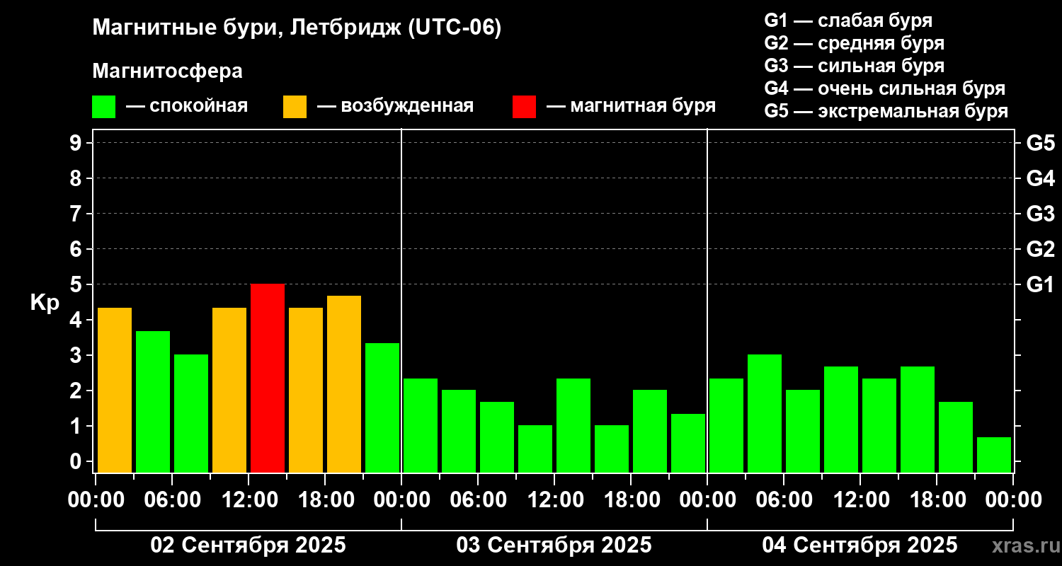 Магнитные бури в Летбридже 4 сентября 2025 года