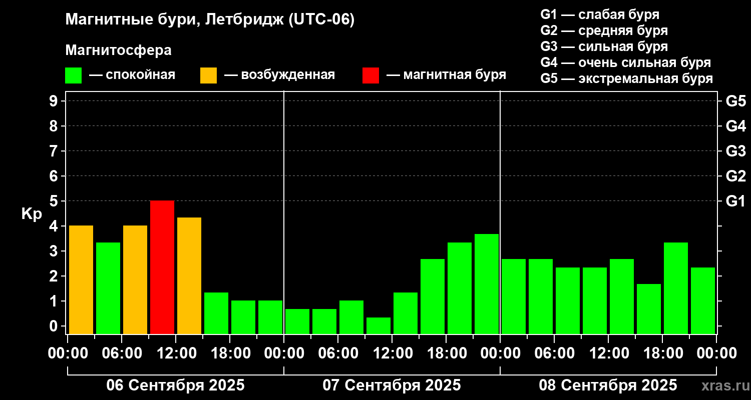 Магнитные бури в Летбридже 8 сентября 2025 года