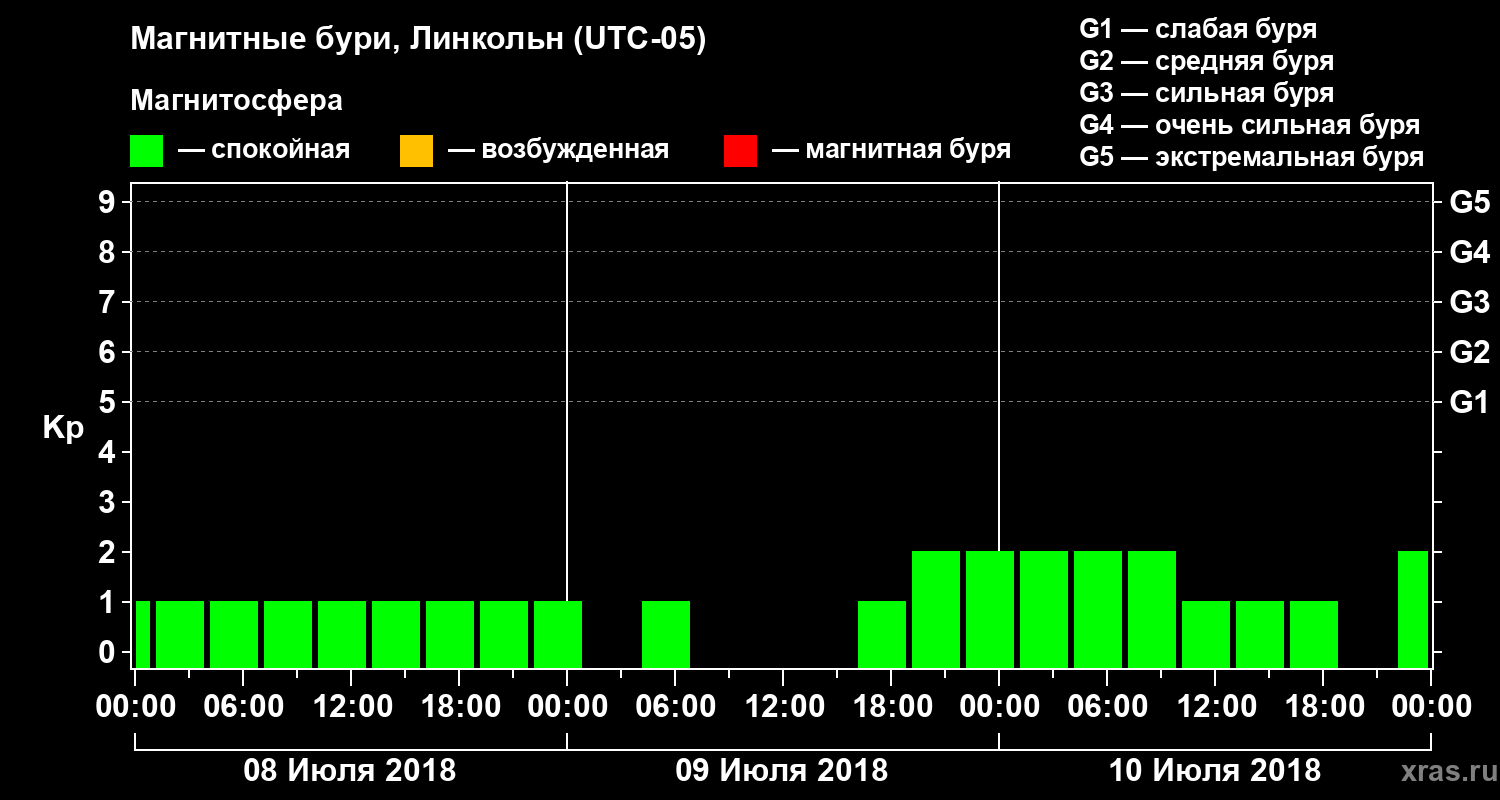 Магнитные бури в Линкольне — 10 июля 2018 года