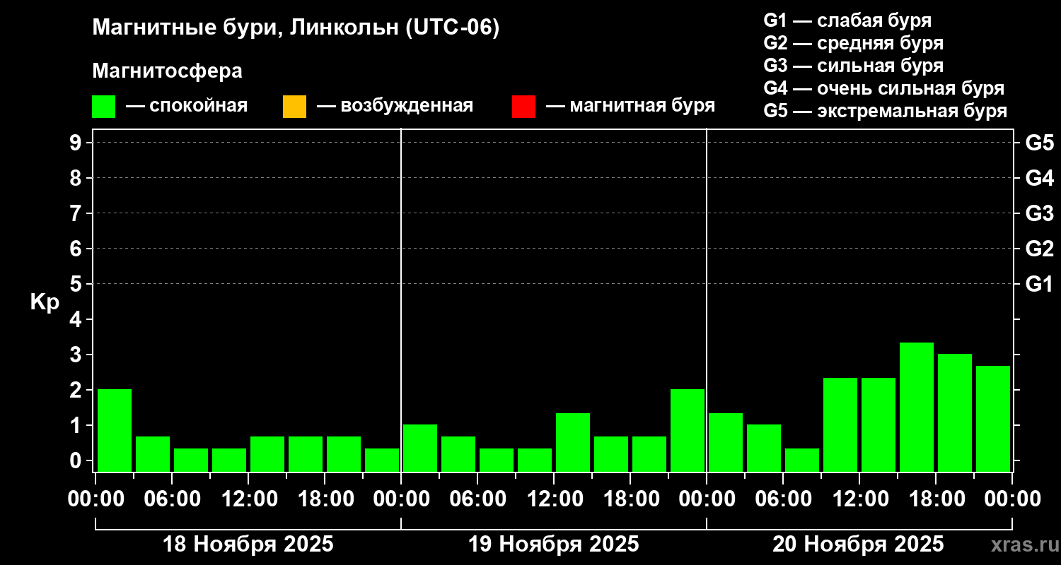 Магнитные бури в Линкольне 20 ноября 2025 года