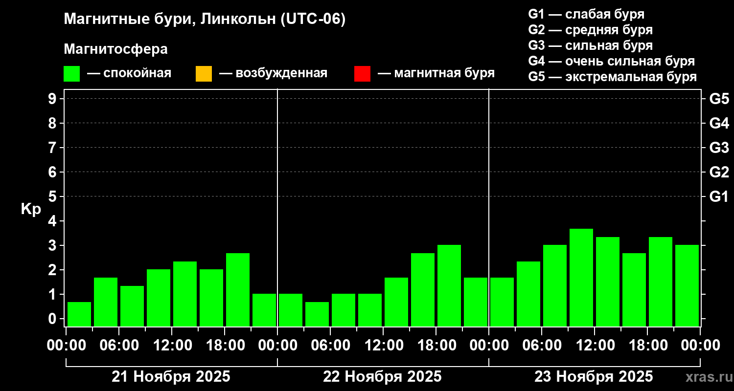 Магнитные бури в Линкольне 23 ноября 2025 года