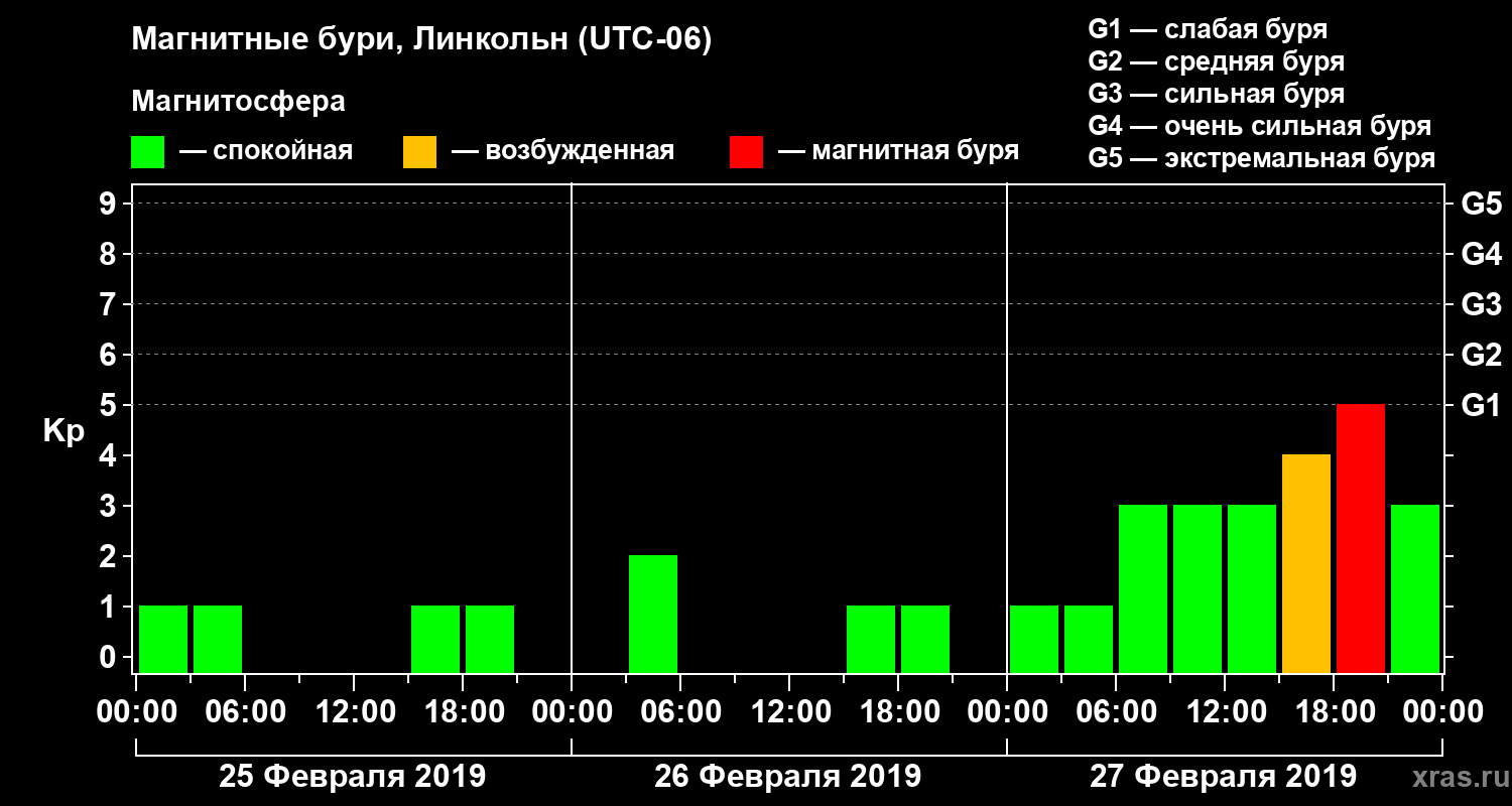 Магнитные бури в Линкольне 27 февраля 2019 года