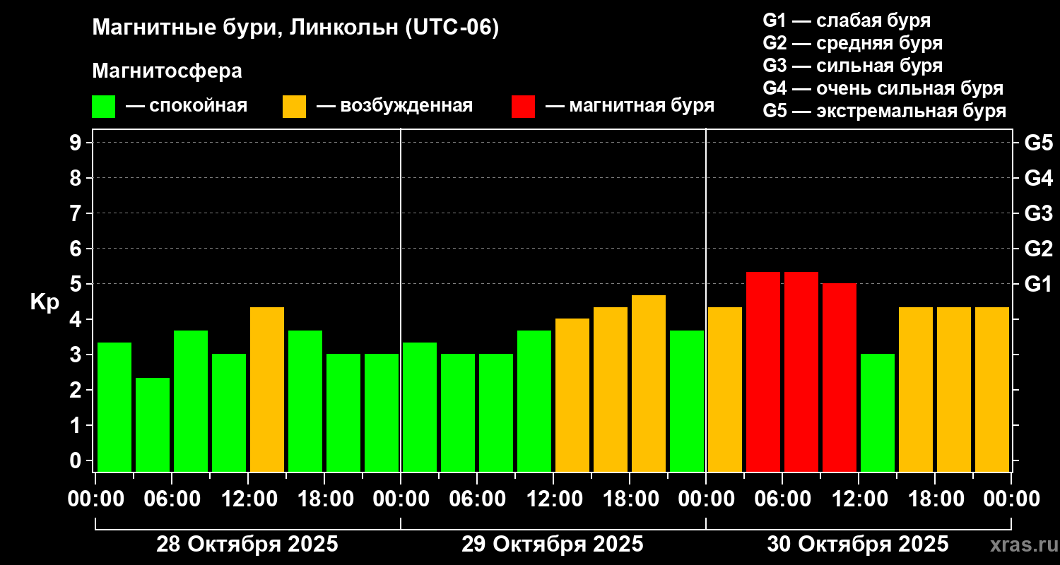 Магнитные бури в Линкольне — 30 октября 2025 года