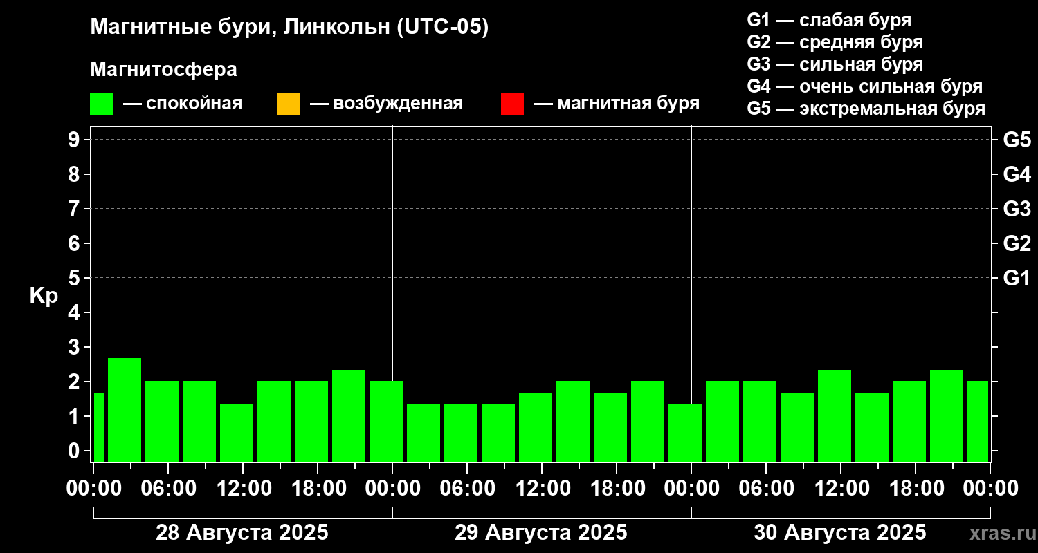 Магнитные бури в Линкольне — 30 августа 2025 года