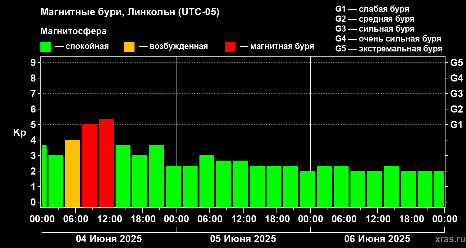 Магнитные бури в Линкольне — 6 июня 2025 года