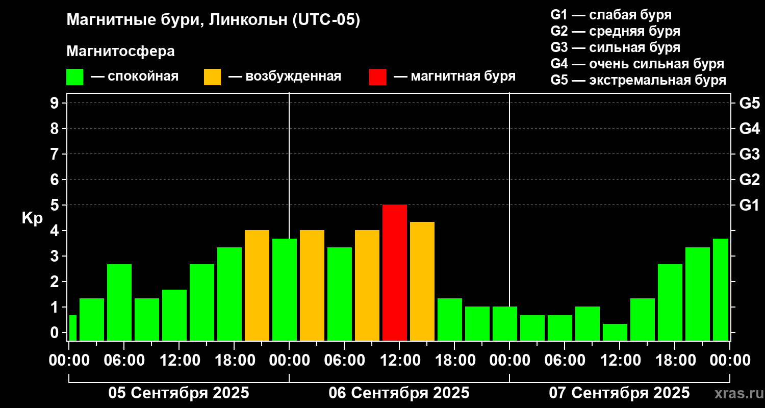 Магнитные бури в Линкольне — 7 сентября 2025 года