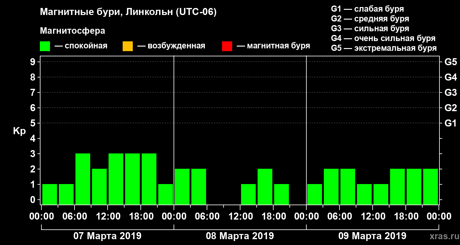 Магнитные бури в Линкольне 9 марта 2019 года