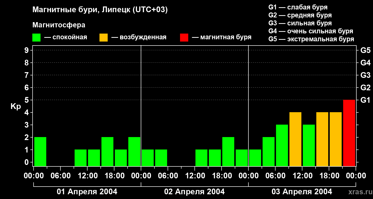Магнитные бури в Липецке — 3 апреля 2004 года