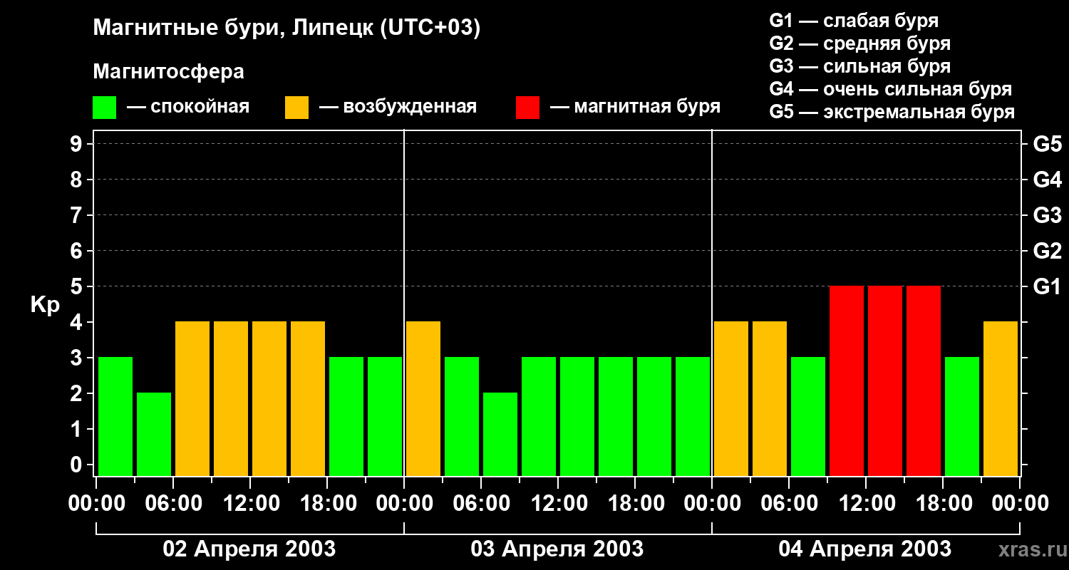 Магнитные бури в Липецке — 4 апреля 2003 года