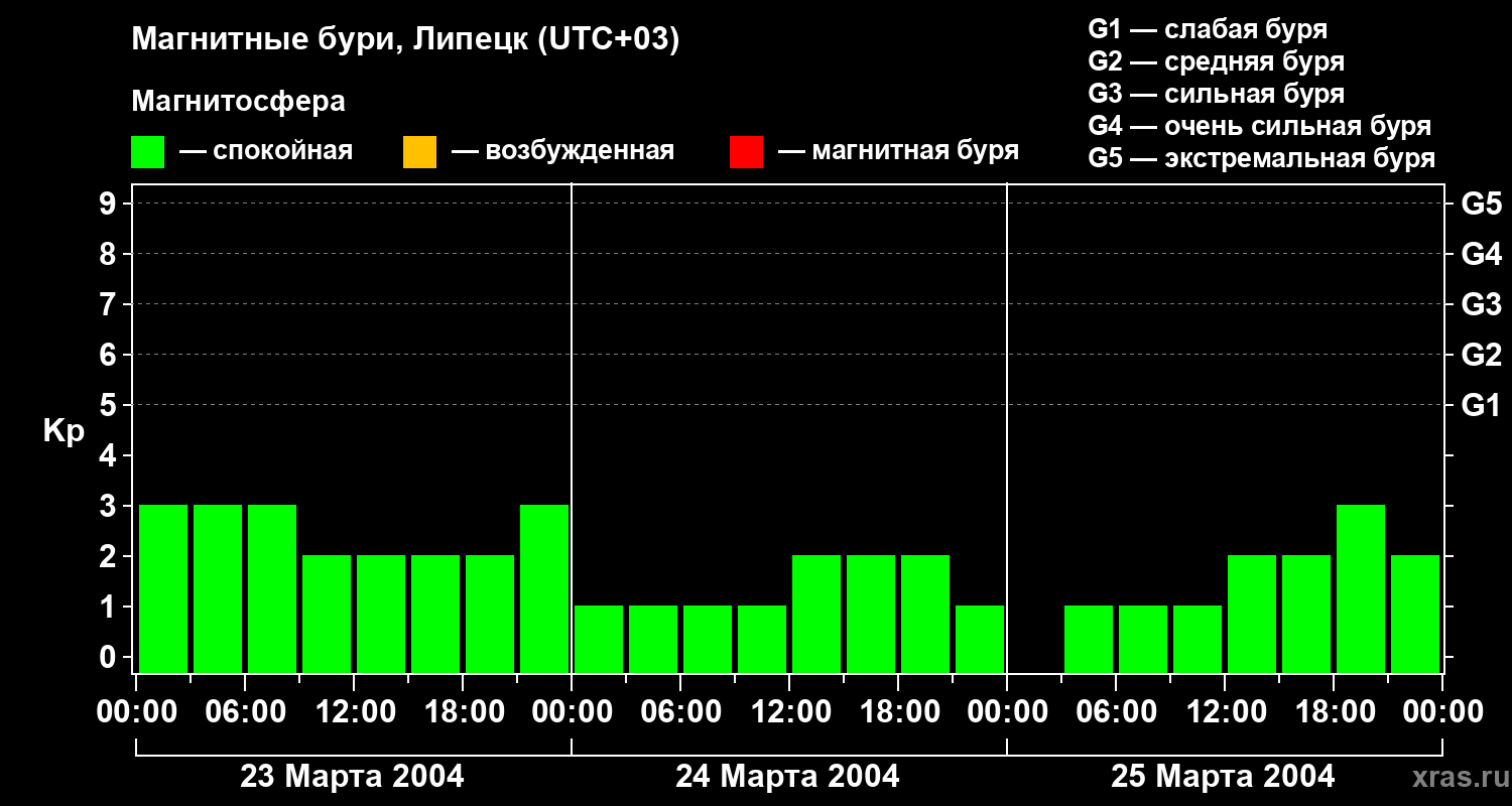 Магнитные бури в Липецке — 25 марта 2004 года